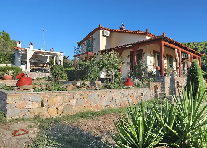 La villa se encuentra a unos 10 minutos en coche de la Playa Limnonari. Los huéspedes también pueden visitar el Museo Casa Vakratsa, situado a unos 7 km.